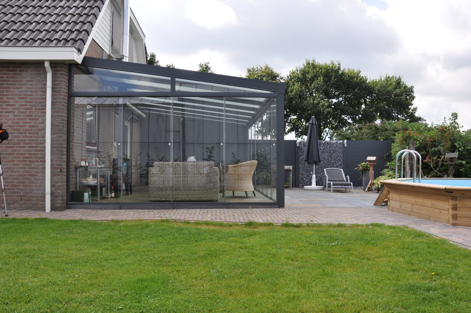 Ein Gartenzimmer ist genau das, was der Name bereits sagt: Ein zusätzliches Zimmer Ihrer Wohnung, direkt in Ihrem Garten. Es entsteht, indem eine Überdachung auf Ihrer Terrasse aufgebaut wird, die zu allen Seiten durch Glaselemente abgeschlossen ist. Dadurch haben Sie regelrecht ein vollständiges Zimmer im Freien, in dem Sie geschützt sind vor Wind und Niederschlag. Sie können ein Gartenzimmer direkt an die Fassade Ihres Hauses montieren, somit ist es wie eine Art Anbau. Wenn Sie eine sehr großzügige Gartenfläche haben, ist ein freistehendes Gartenzimmer eine besonders exklusiv anmutende Alternative.